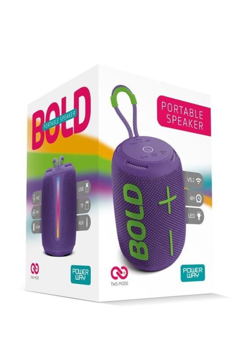 Powerway Bold Bluetooth Hoparlör Powerway Bold Bluetooth Hoparlör, kullanıcılarına kablosuz müzik keyfi sunan şık ve kullanışlı bir üründür. Bluetooth 5.1 teknolojisi sayesinde 10 metrelik bir menzilde cihazlar arasında güçlü bir bağlantı sağlar. Ürünün kullanımı oldukça kolaydır. Açma ve kapatma işlemleri için sadece bir düğmeye basmanız yeterlidir. Mod değiştirme özelliği ile Bluetooth, USB, TF Kart, FM Radyo ve AUX modları arasında geçiş yapabilirsiniz. Ayrıca ses kontrolü ile istediğiniz ses seviyesine kolayca ayarlayabilirsiniz. 52mm 2*7W hoparlörü sayesinde yüksek kaliteli ses deneyimi yaşarken, 18650 Lityum Pil 1200mAh ile 4 saatlik kesintisiz çalma süresi sunar. Ürünün şık tasarımı, her ortama uyum sağlayarak kullanıcılarına estetik bir deneyim sunar. Powerway Bold Bluetooth Hoparlör, kablosuz bağlantı, USB disk/TF Kart/AUX oynatma modu, dahili lityum pil, eller serbest fonksiyonu ve RGB göz kamaştırıcı LED lambalar gibi özelliklerle donatılmıştır. Ayrıca, 32 GB'a kadar TF kart desteği ile geniş depolama alanı sunar. Güçlü ses performansı, kullanışlı özellikler ve şık tasarımıyla Powerway Bold Bluetooth Hoparlör, müzik tutkunları için ideal bir seçimdir.